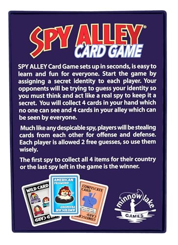 Experience a Twist on the Classic Spy Alley Board Game with Spy Alley Card Game. All the excitement of hidden identities, close calls, and white-knuckle, edge-of-your-seat thrills have been transformed into a portable, easy-to-set-up, and quick-to-play card game. Unleash the spy adventure anytime, anywhere