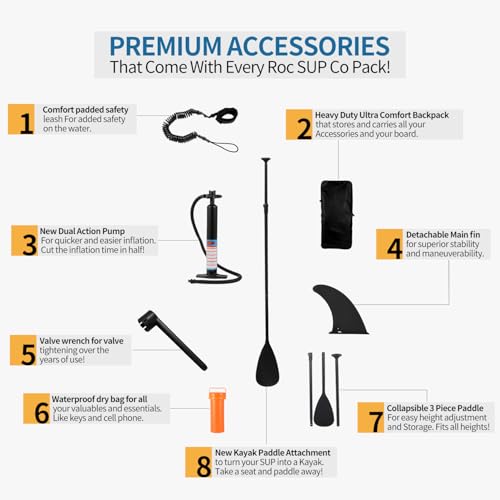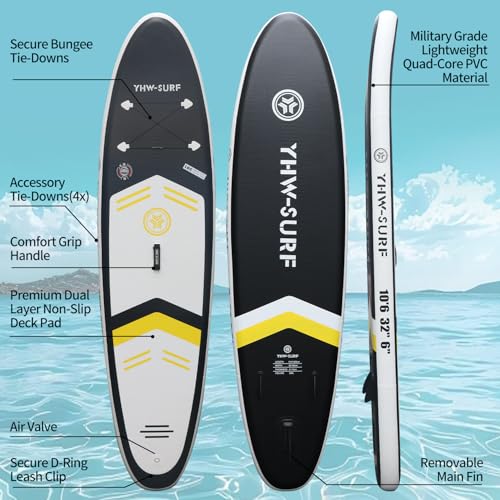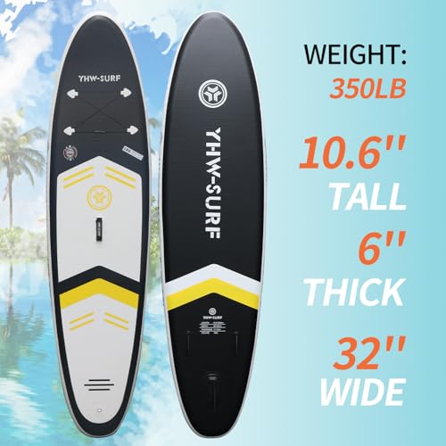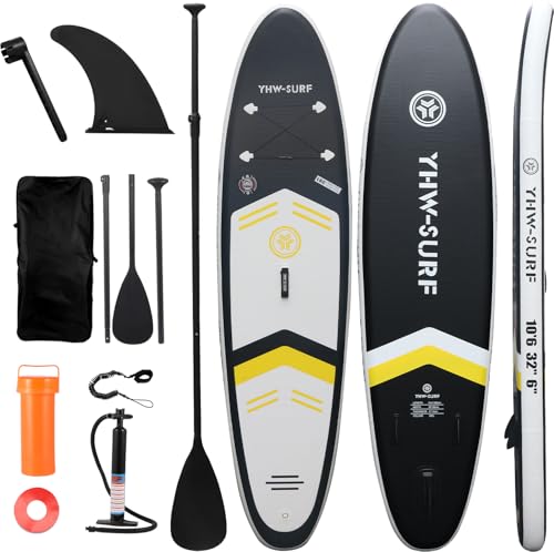 Specification: 10.6”32“6 Premium Inflatable Stand Up Paddle Boards with Durable SUP Paddle Board Accessories Wide Stable Design Includes Backpack Required Parts Non-Slip Comfort Deck for Youth & Adults