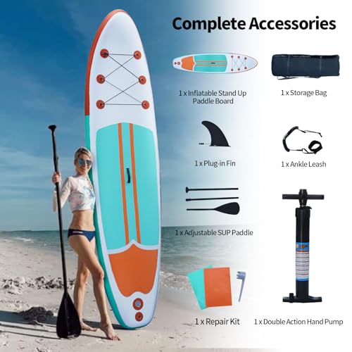 Specification: Inflatable Stand Up Paddle Board with SUP Accessories, Anti-Slip EVA Deck, 10’6’’ Inflatable Paddle Boards for Adults and Youth of All Skill Levels