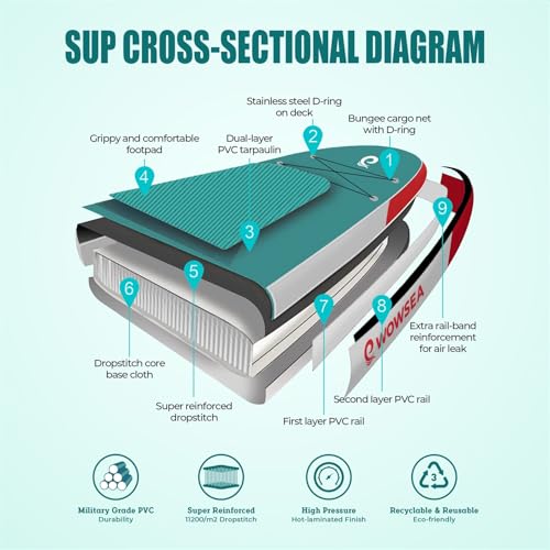 Specification: WOWSEA Swift S2 Inflatable Paddle Board, Exploring and Stable SUP Board, Sport & Racing Paddle Board with Action Camera Mount, Nice iSUP Board for Aquatic Exercise and Professional Paddlers (14′)